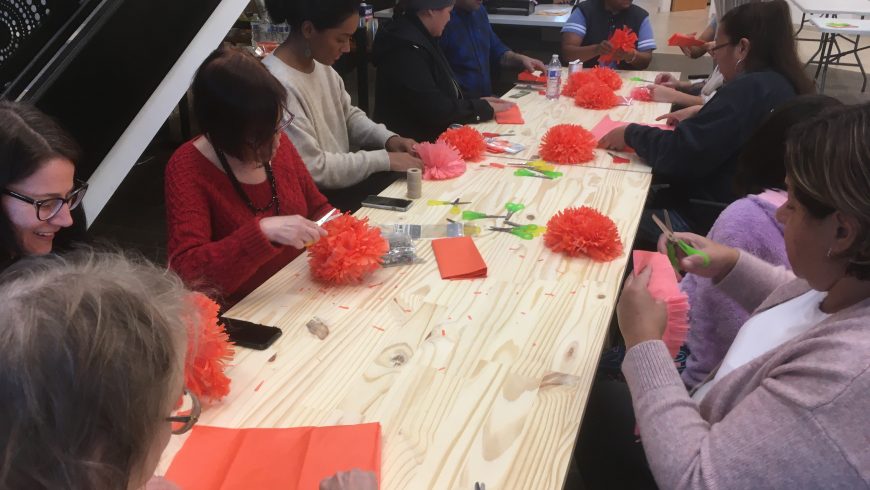 CLUES celebrated Día de Muertos with a Community Altar Project in our new Latino Art Gallery. More than 100 people participated in the altar creation, including students in CLUES ESL classes. In addition to making paper flowers and co-creating the altar, they learned some art and color vocabulary.