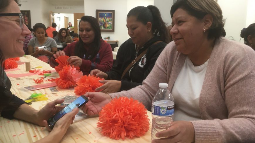 CLUES celebró el Día de Muertos con un proyecto de Altar Comunitario en nuestra nueva Galería de Arte Latino. Más de 100 personas participaron en la creación del altar, incluyendo estudiantes de las clases de inglés de CLUES ESL. Además de hacer flores de papel y co-crear el altar, aprendieron algo de arte y vocabulario de colores.