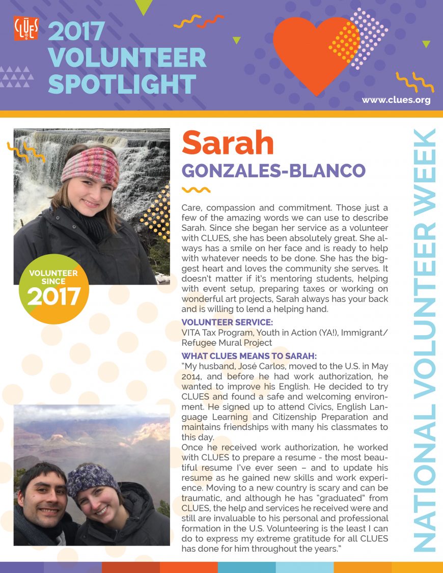 National Volunteer Week Spotlight: Sarah Gonzales-Blanco
