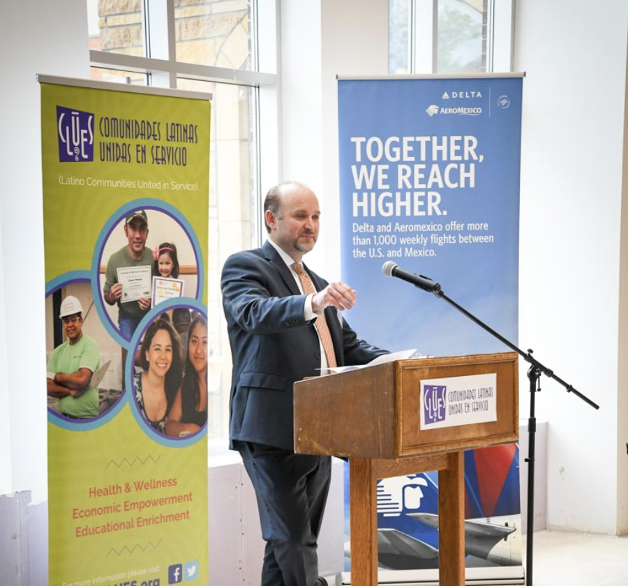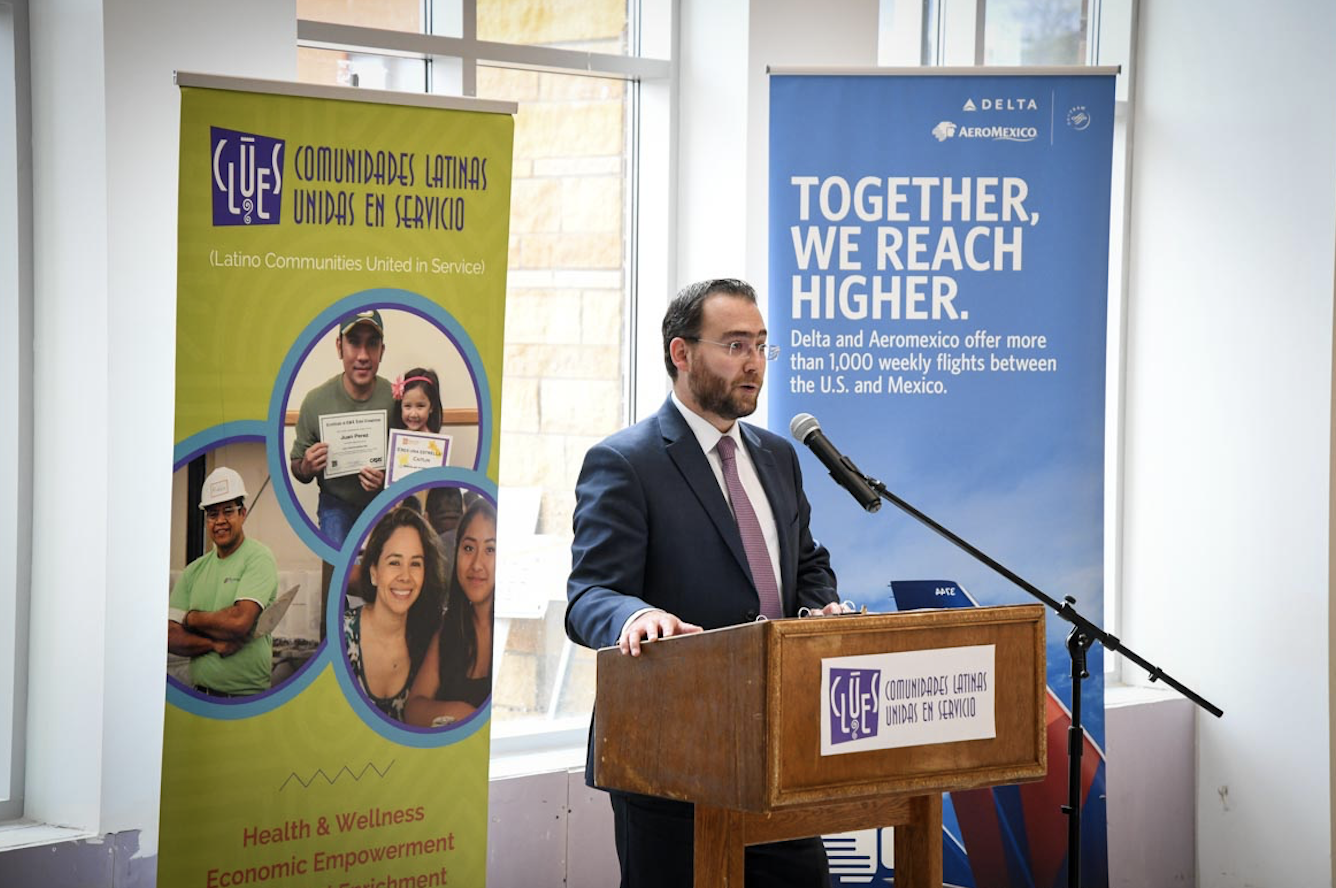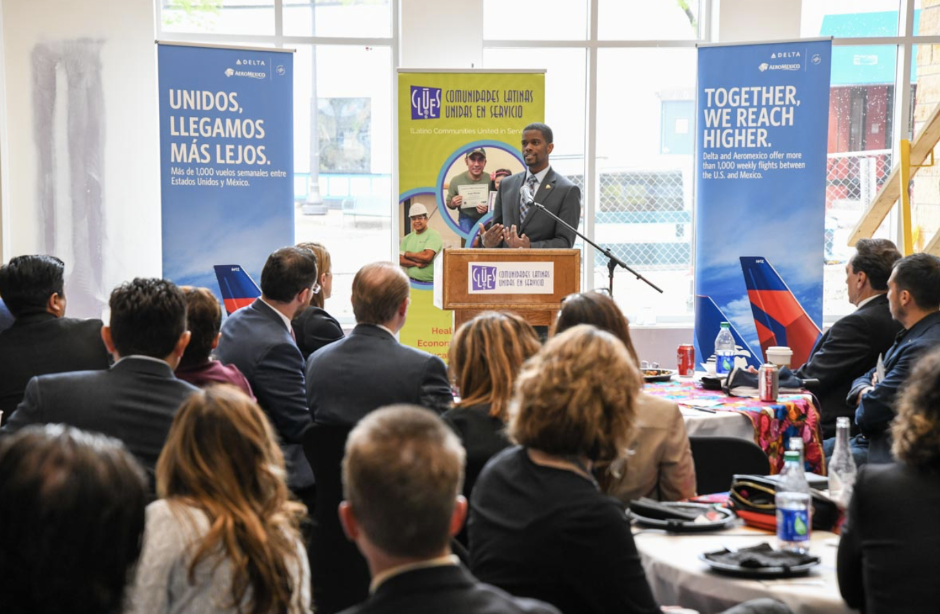 The celebratory luncheon also included tours of the building construction and comments from St. Paul Mayor Melvin Carter, CLUES Board Treasurer Jeff Savage, Consul Affiliated Rodrigo Alcocer Urueta and Delta-Aeroméxico representatives.