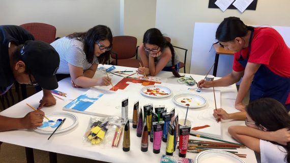 Throughout the project, CLUES Youth in Action (YA!) students and mentors have participated in a number of activities, including collaborating on two murals that illustrate their immigration stories. They also participated in focus groups to support the university’s research and did community service projects like preparing gardens on Earth Day, making bird feeders and teaching kids about birds and habitats.
